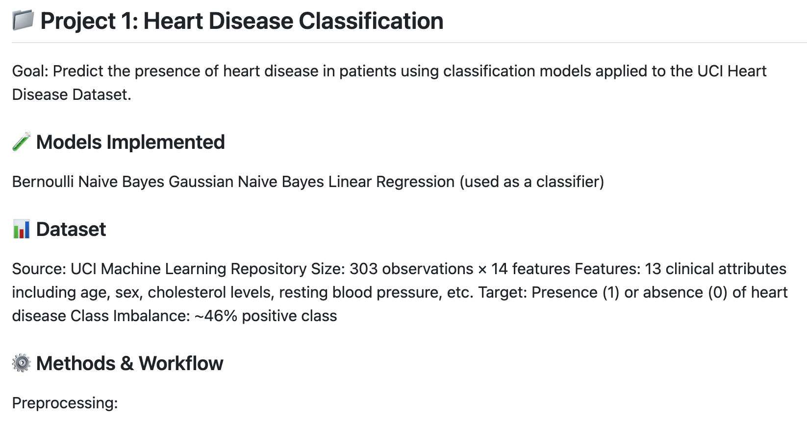 Compared Naive Bayes and regularized regression models, achieving 83.5% accuracy with Ridge regression on UCI medical dataset.
