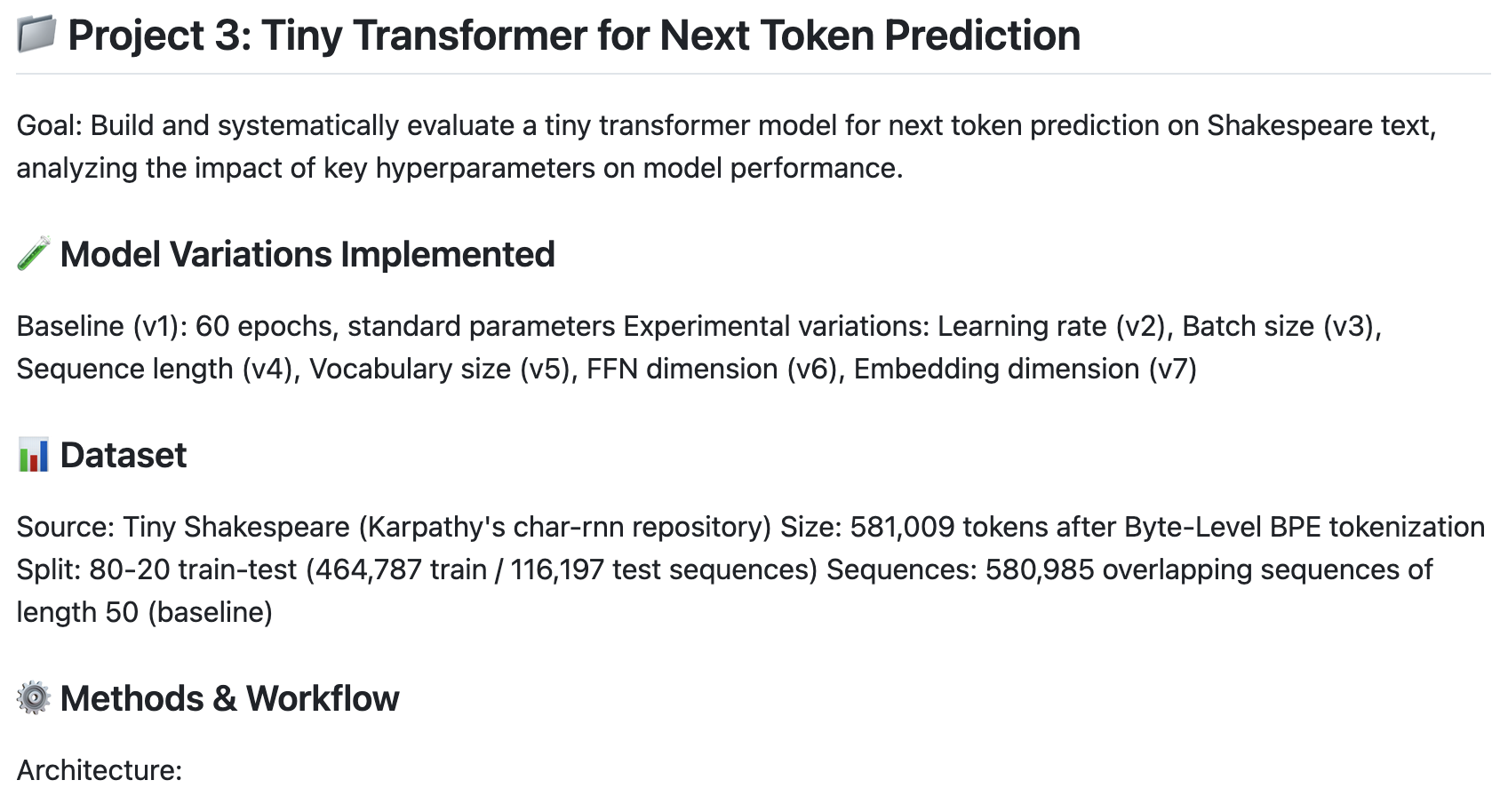 Built transformer from scratch for Shakespeare text generation, achieving 51% perplexity improvement through systematic hyperparameter optimization.